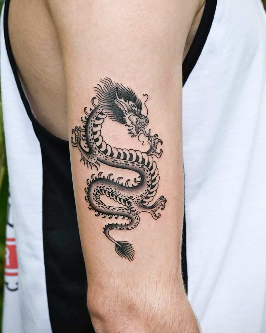 - Japanese Dragon Tattoo (Asian Dragon Tattoo): Designs that represent power, wisdom, and protection, often coiled in dynamic water and cloud backgrounds.