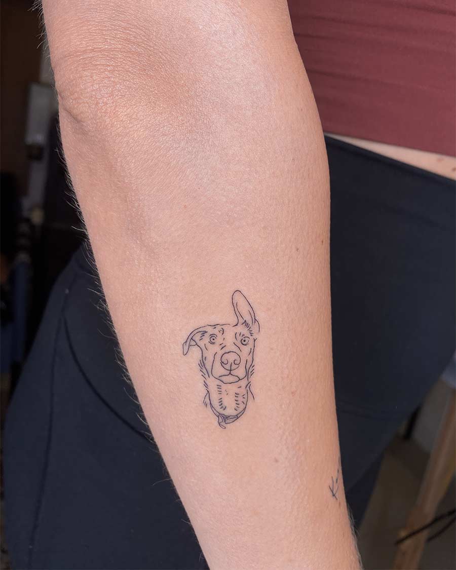 Welcome to our Dog Tattoo Gallery in Canggu, Bali. At our studio, we understand that a dog is more than just a pet—they are family. This gallery is a tribute to the loyal companions who leave paw prints on our hearts. We specialize in capturing the unique spirit of your furry friend through high-precision fine line work and micro-realism, making us the premier destination for pet tattoos in Bali.